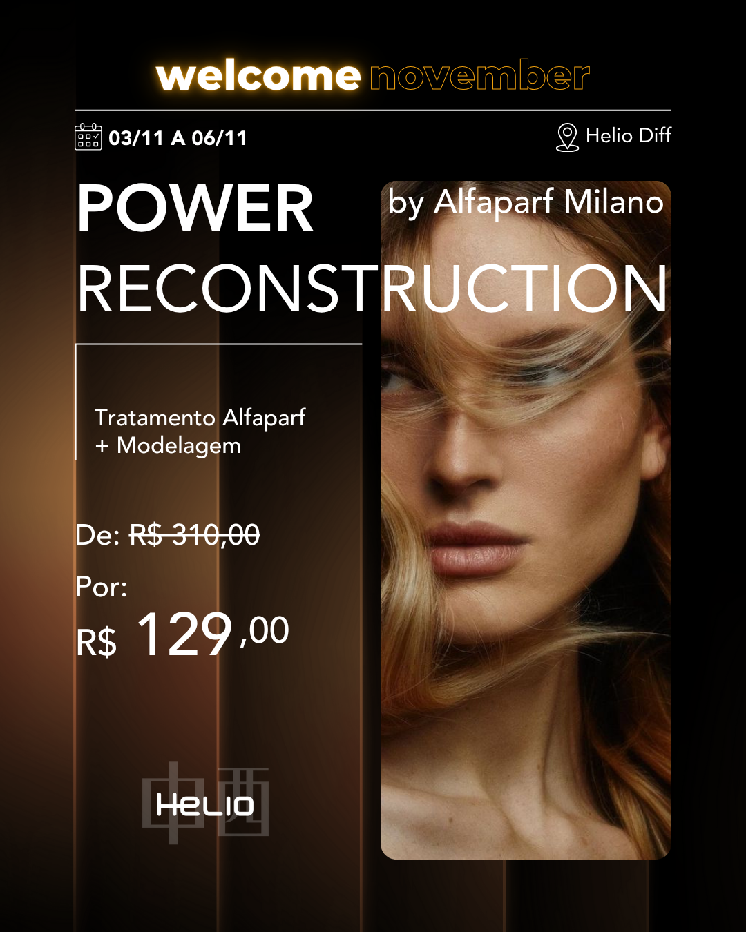 Um dia para celebrar a força e a renovação dos fios. Com a linha completa Power Reconstruction — shampoo, condicionador, máscara e ampola — você vai vivenciar um ritual de reconstrução capilar profundo, desenvolvido para devolver elasticidade, brilho e resistência aos cabelos danificados.